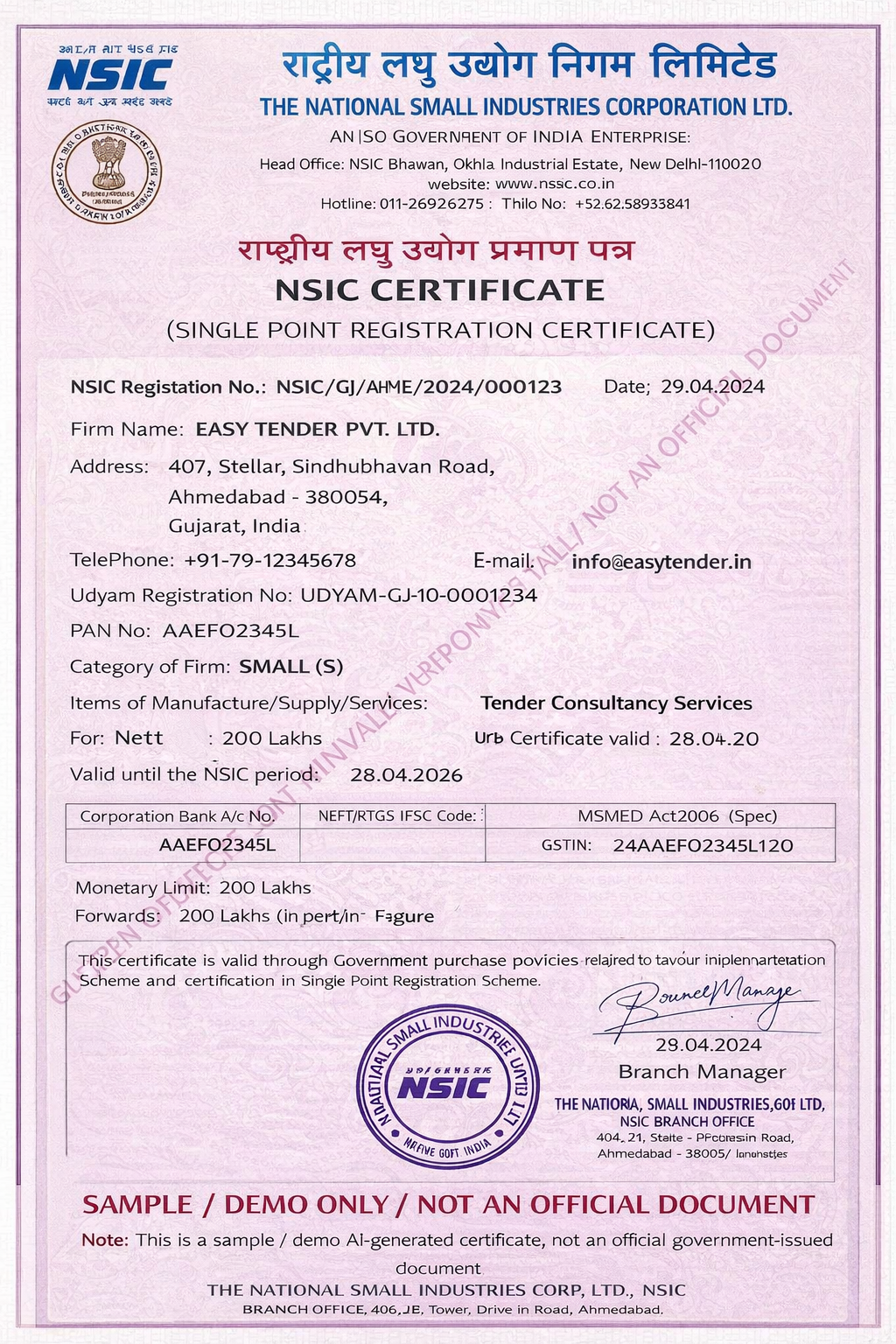 At Easy Tender Pvt. Ltd, we provide comprehensive and professionally managed assistance for obtaining the NSIC Registration Certificate under the Single Point Registration Scheme (SPRS).